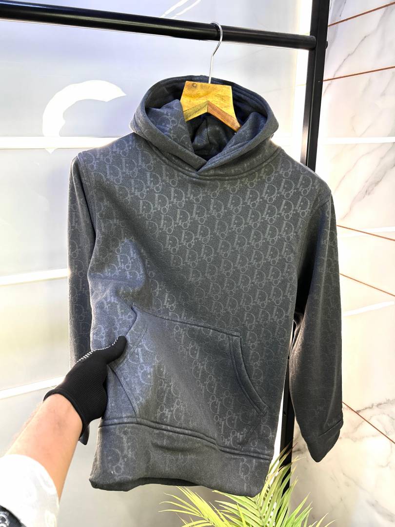 Christian Dio r Allover Monogram Super Premium Dark Grey Hoodie 1121