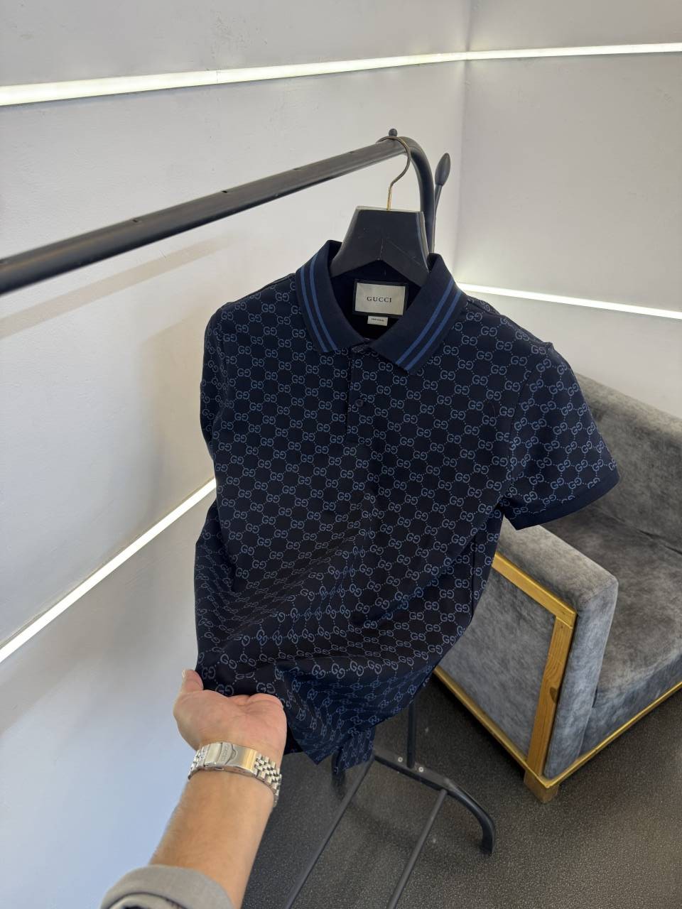 Gucc i blue GG monogram imported polo tshirt