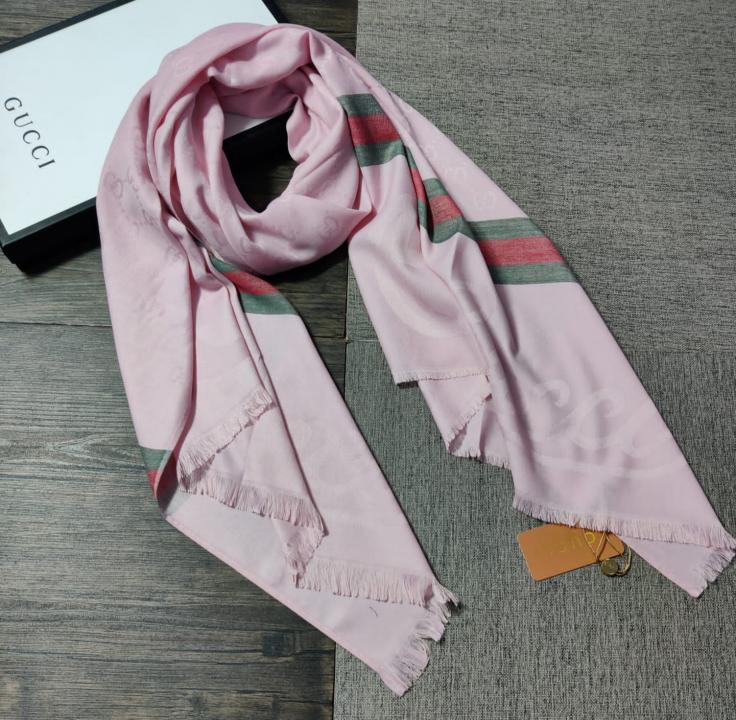 • Gucci_Baby_Pink_Green_Red_Web_Stripe_Tonal_Monogram_Pashmina_Scarf_Pashmina_Cotton_Polythene_Scarf