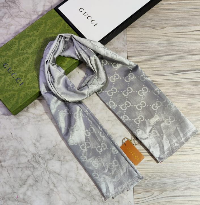 Gucci_Silver_Grey_Tonal_Double_G_Monogram_Elegant_Design_Pashmina_Scarf_Pashmina_Cotton_Polythene_Scarf