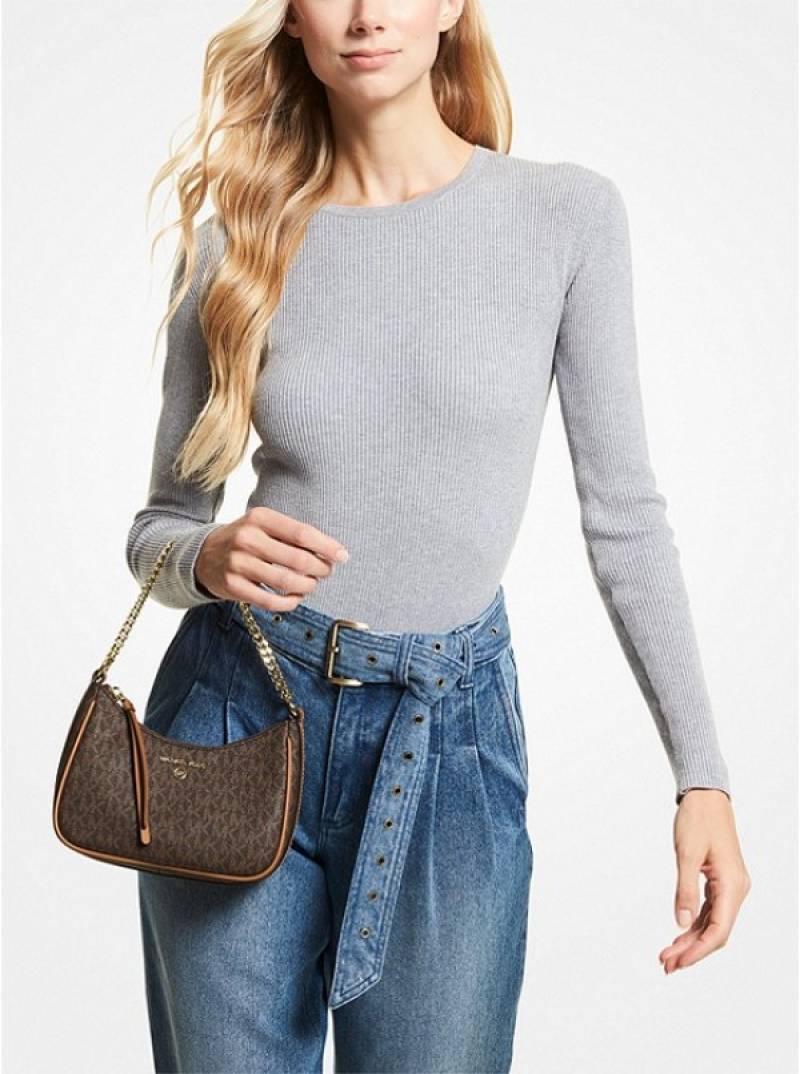 Michalekorsmk jet set charm small logo pochette with og box(22083-brown-brown)