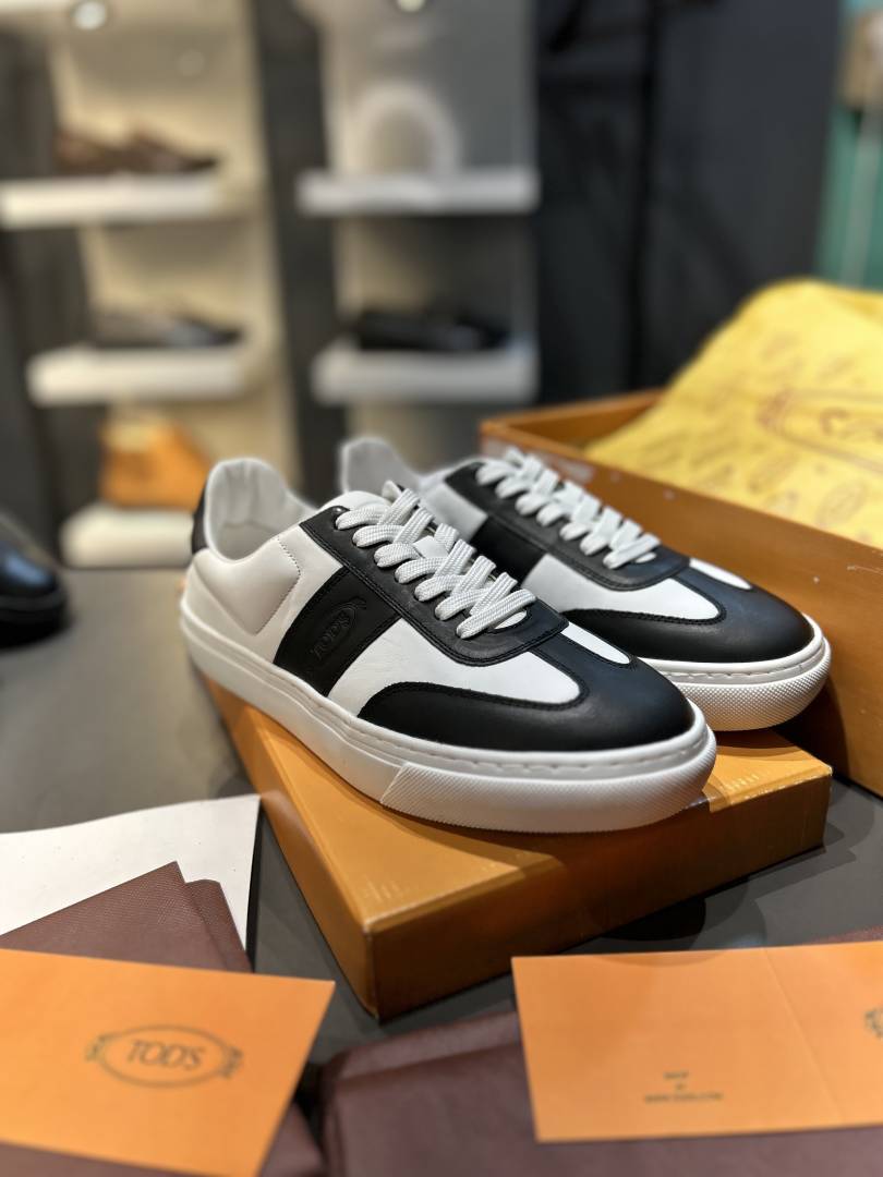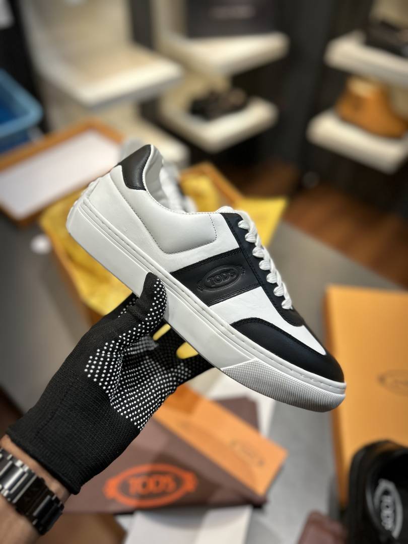 TOD_S LEATHER LOW TOP SNEAKERS WHITE BLACK