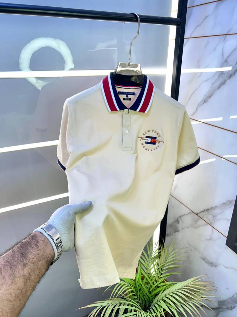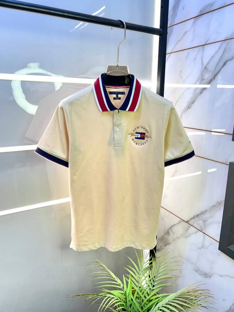 Tommy_Hilfiger Cream Embroidery Logo Collar Neck Premium Polo T-shirt F2804-CR