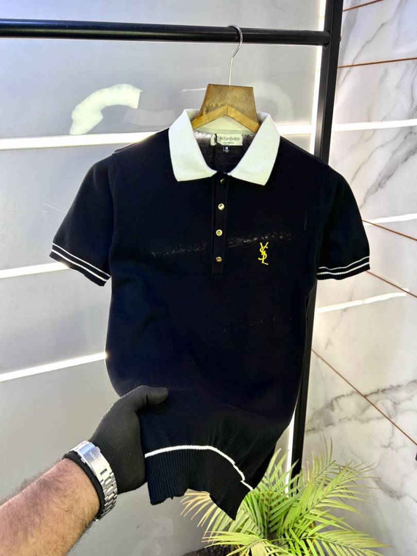 Ysl Black Knitted Polo Premium Collar Neck T-shirt F3131-BL
